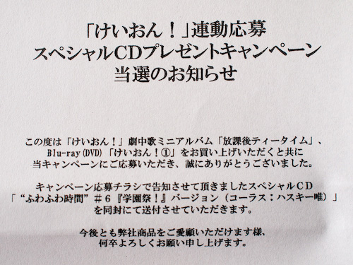 けいおん!スペシャルCD当選した!!