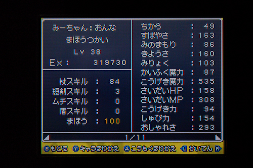 みーちゃんのステータス詳細
