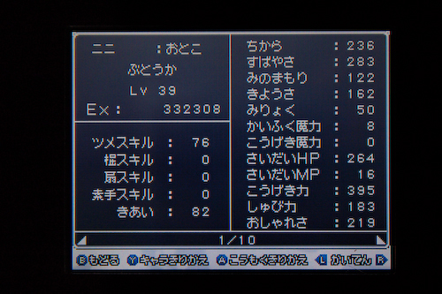 武闘家なので、パワーとスピードをひたすら上げた。